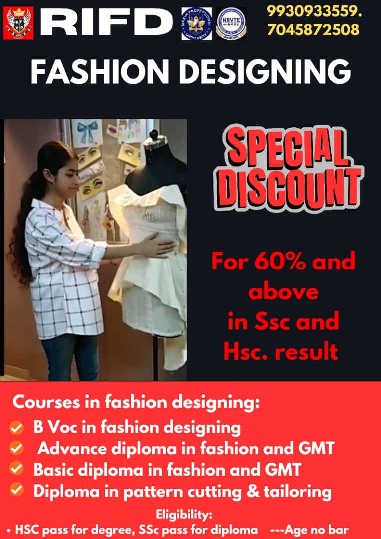 Home Courses Unleash Your Creativity at Raj Institute of Fashion Design: Where Style Meets Artistry!” Fashion Designing Read More Tailoring Course Read More Hobby Course Read More Events & Announcement Admissions open for academic year 2024- 2025 in Fashion Designing, Tailoring & Short-term courses for summer vacation. Offers Special discount offer on tailoring, designing and hobbies courses for 50 plus ladies.Special discount offer for students of Ssc Nd HSC with 60% and above marks. Explore Registration View Internship & Placement Assistance View Our Alumni View Facilities View Our Training & Pacement Partners Previous Next * The above logos are property of the respective companies and used for representative purpose only.